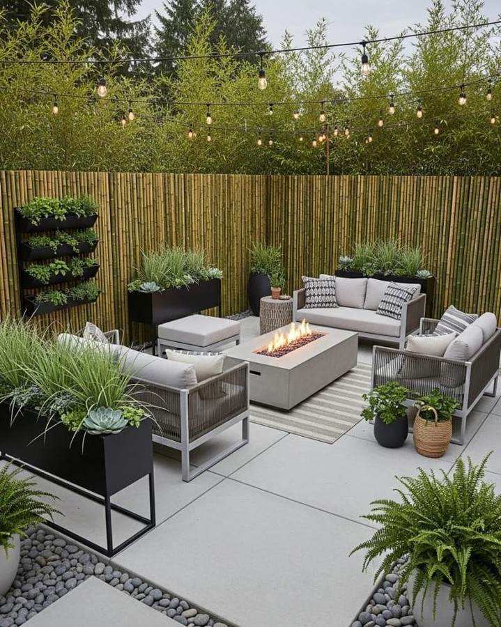 Think clean lines, neutral colors, and simple furniture. Add a couple of sleek chairs, a low-profile table, and maybe a fire pit for evenings. The simplicity creates a calm, uncluttered outdoor vibe.