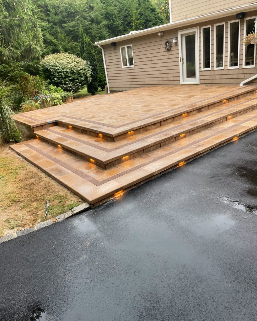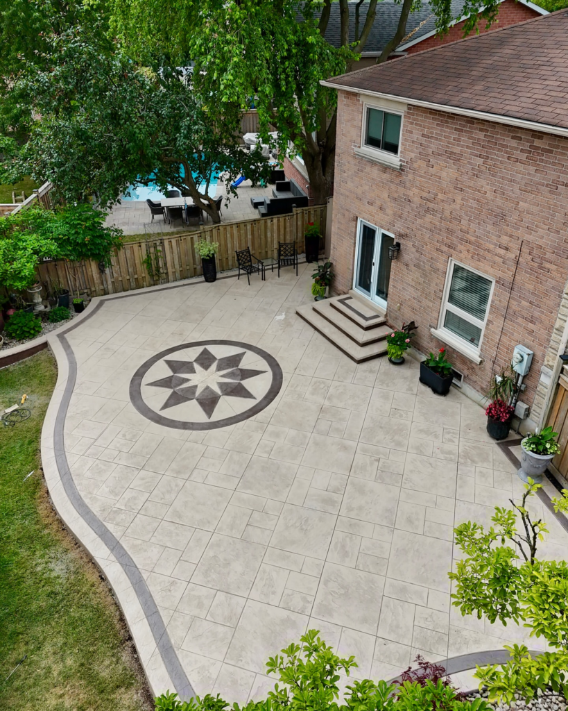 Stamped concrete is one of the most popular ways to elevate a patio without the cost of natural stone or brick. By pressing patterns into wet concrete, contractors can mimic materials like slate, flagstone, or cobblestone.