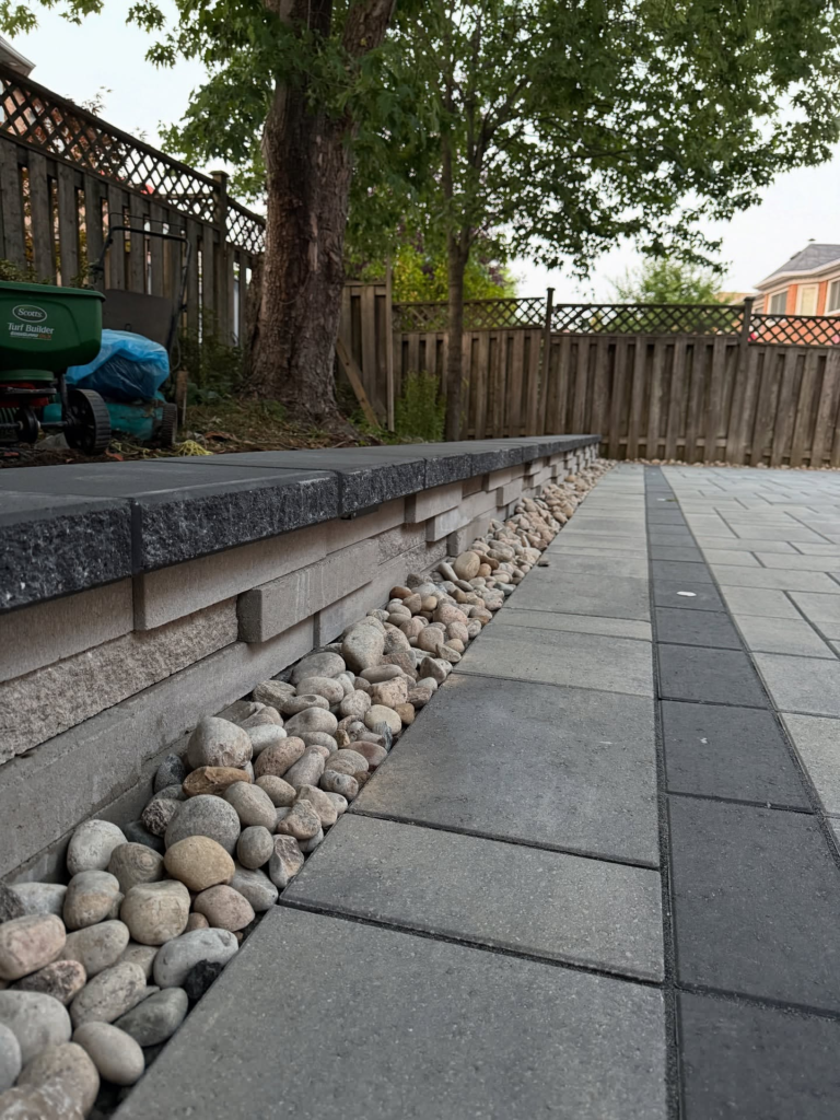 The contrast between smooth concrete and loose gravel creates texture and visual interest. It also helps with drainage and gives the patio a finished look.