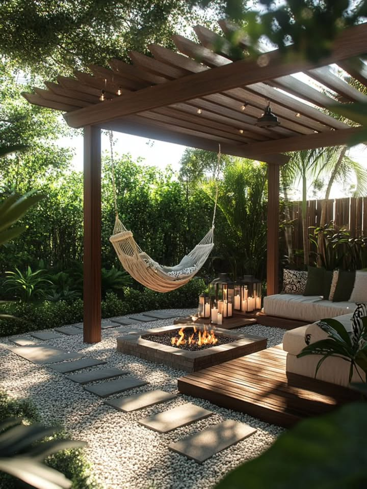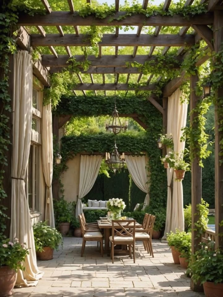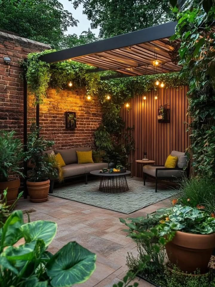 You can leave it open for a breezy feel or add climbing plants like ivy or jasmine for natural shade. I personally love pergolas with string lights; they create such a magical evening atmosphere.
