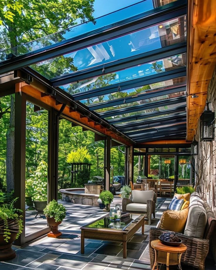 This design keeps rain out while letting sunlight pour in. It’s perfect for homeowners who want a bright, open outdoor area.