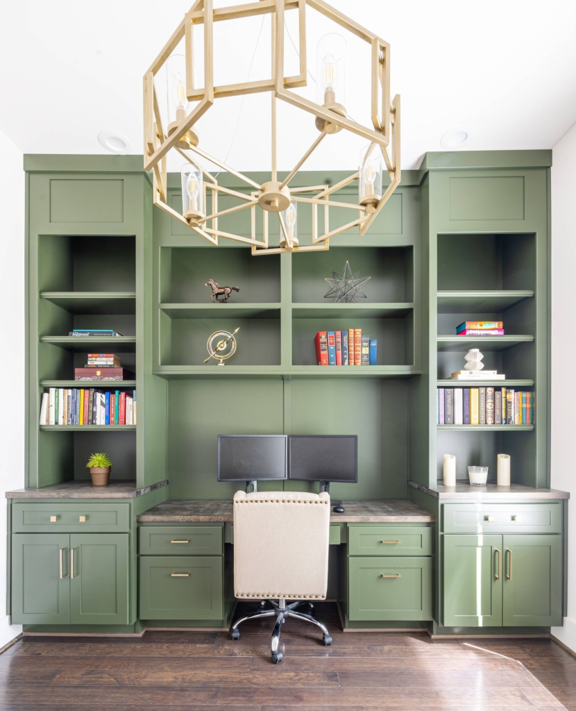 Combine your love for reading with productivity. A desk with built-in bookshelves keeps your favorite reads within arm’s reach and adds vertical interest to your living room.