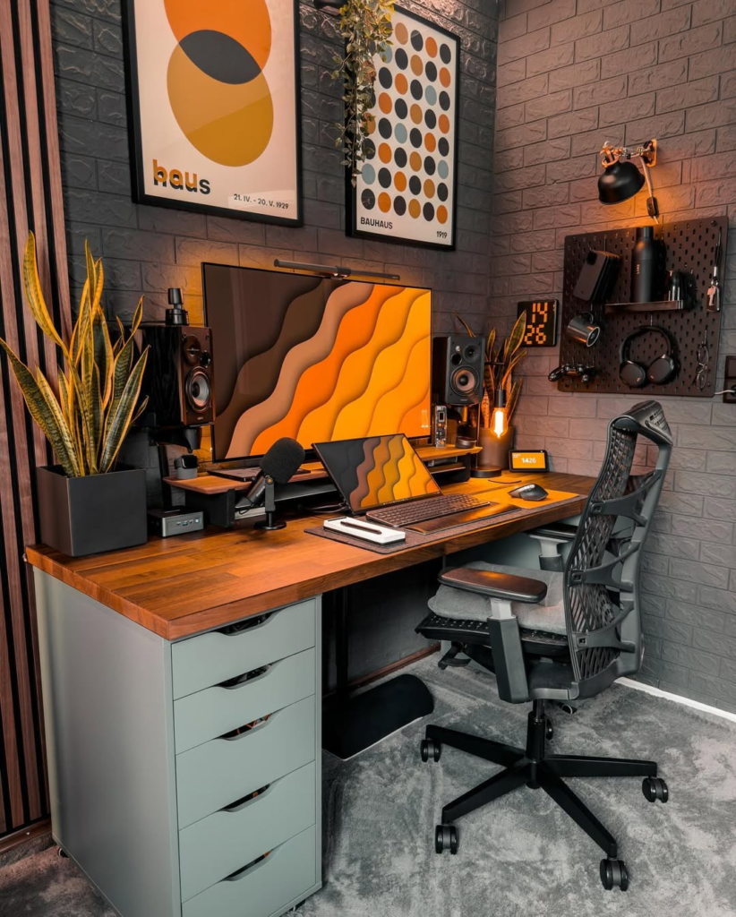 For those who love edgy, modern vibes, an industrial-style desk can be perfect. Think wood and metal combos, exposed screws, and rugged finishes.