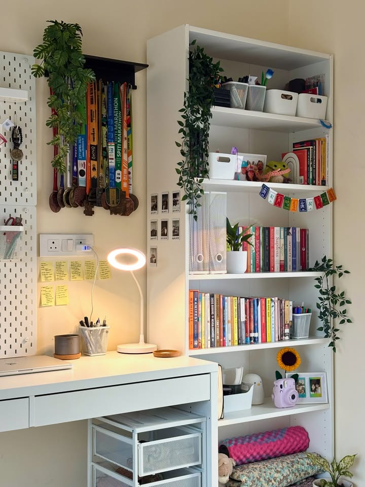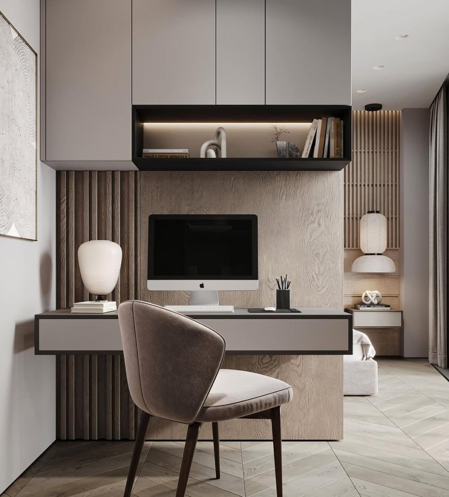 Add a small lamp, a plant, and you’ve got a serene corner for focused work.