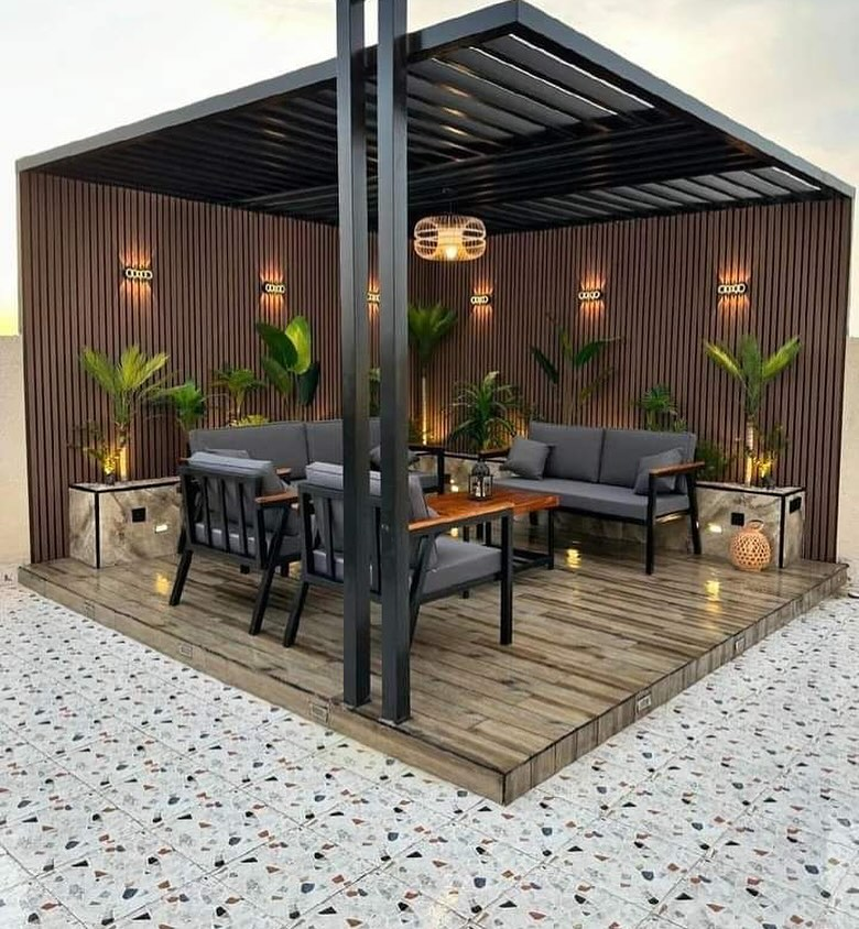 Use high-end furniture, large plants, elegant lighting, and soft cushions. Add a daybed or lounge chairs for a truly relaxing vibe.