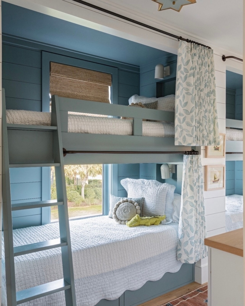 Kids love having their own mini hideaway. A simple curtain around each bunk makes it feel like a secret fort while also helping with light during bedtime.
