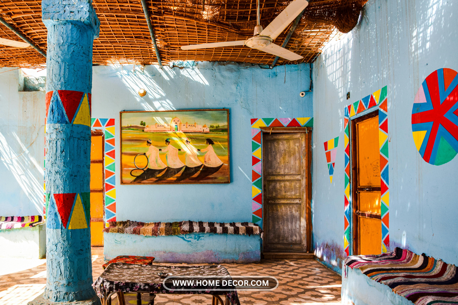 The natural texture pairs beautifully with bright textiles and clay pottery, creating that perfect cozy yet sophisticated vibe. Bonus points for furniture with colorful painted accents!