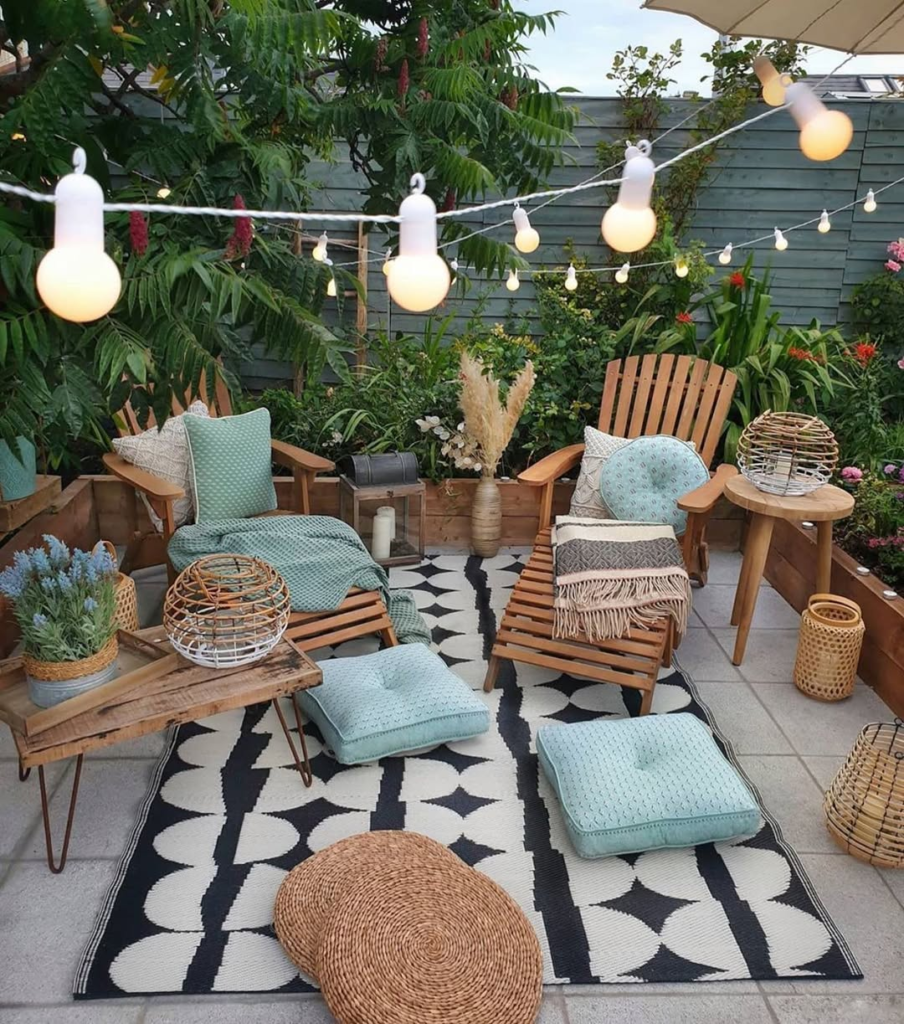 You can mix in paper lanterns or lantern-style lamps for an extra festive touch. It’s a simple way to instantly make your patio magical.