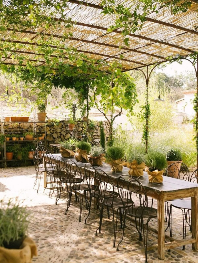 One of my favorite ideas? Let the greenery do the work. Train wisteria, ivy, or climbing roses up the beams.