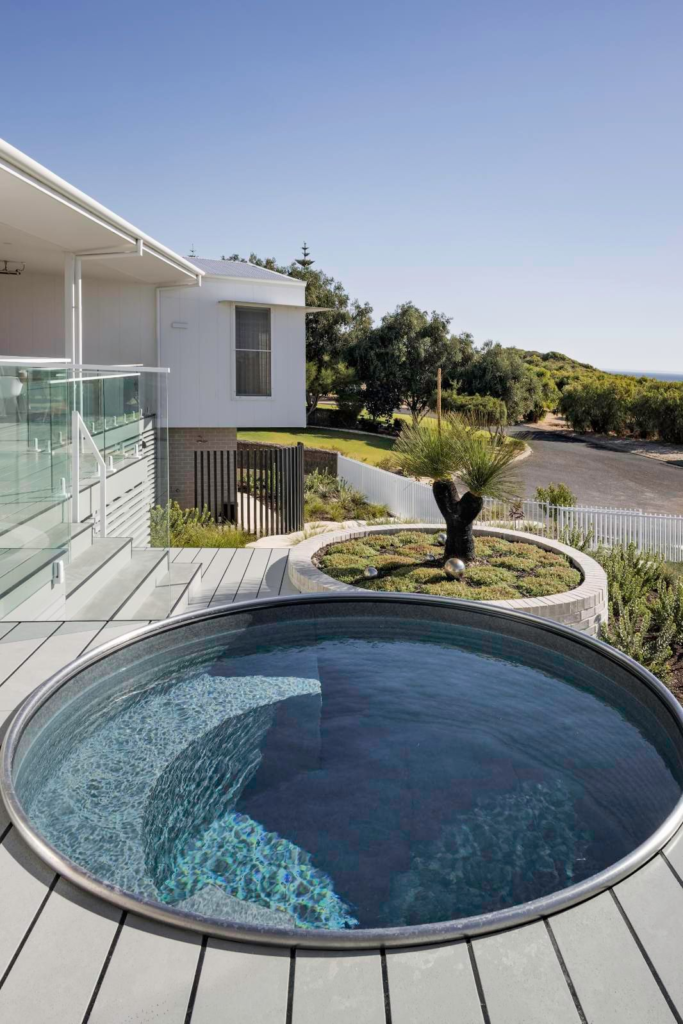 If your backyard isn’t rectangular, a circular plunge pool can be a perfect fit.