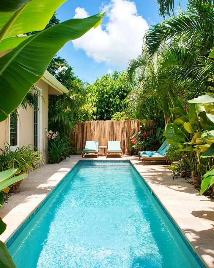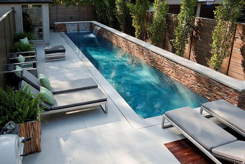Small doesn’t mean you can’t swim laps! A narrow, elongated lap pool is perfect for fitness enthusiasts. You get the functionality of a full-size pool in a compact package. Pair it with a poolside pergola for shade.