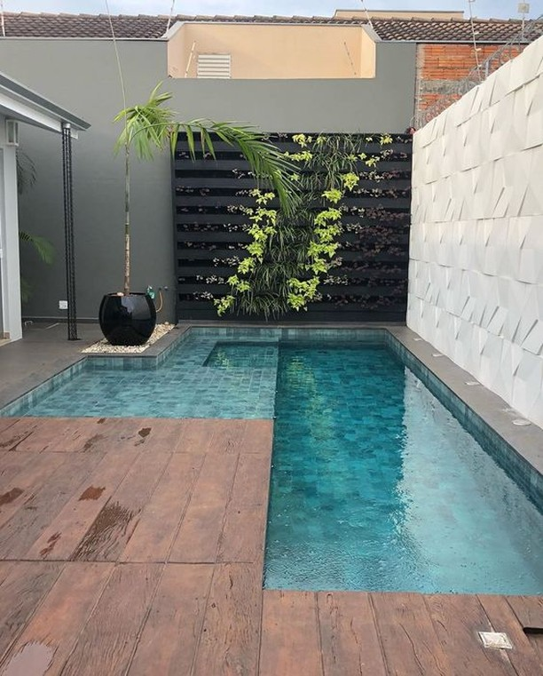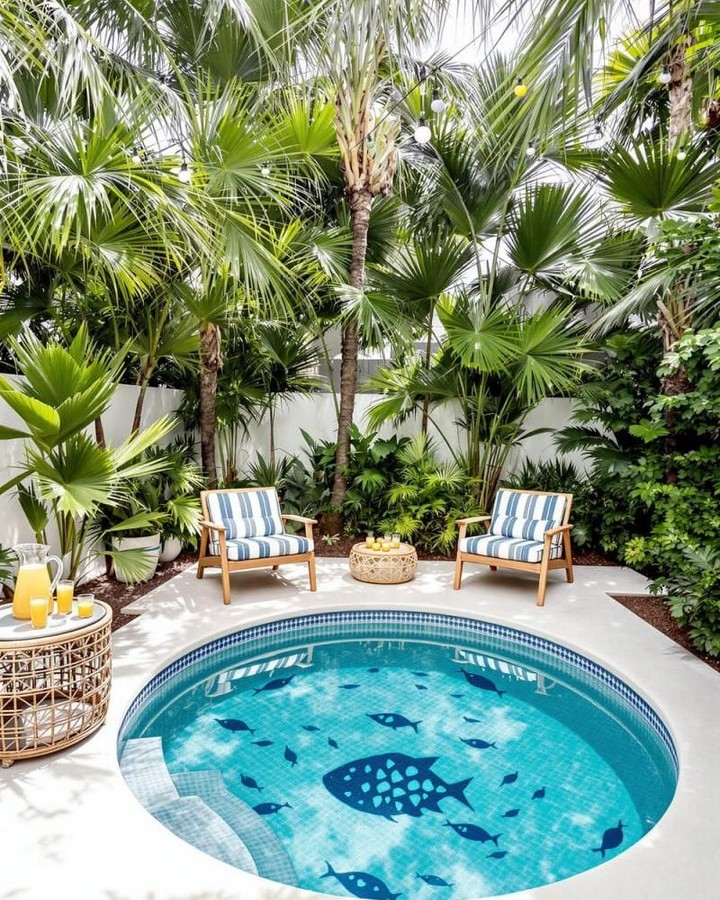 Colorful tiles or mosaic patterns make even a tiny pool pop. Play with shades of blue, green, or even tropical patterns to give your backyard an artistic and personalized feel.