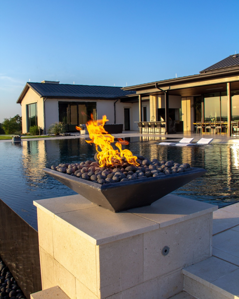 Fire and water are a stunning combo. Adding a small fire pit or linear flame along your pool edge creates a warm ambiance for evening swims or gatherings. It’s perfect for small spaces looking for maximum impact.